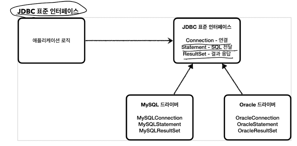 커넥션 연결, SQL 전송, 결과 응답을 DB마다 다르게 개발 해줘야 함..