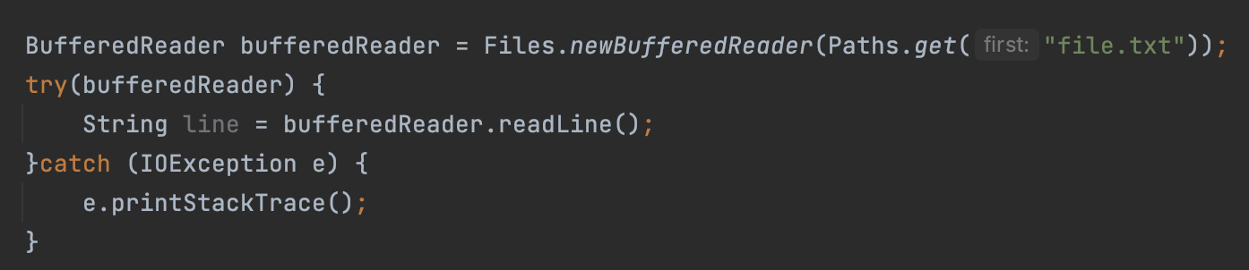 AutoCloseable 를 상속받은 BufferedReader 변수라 가능한 것이다.