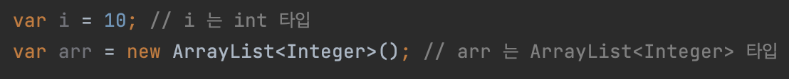 로컬 변수 타입 추론이 가능해졌다.