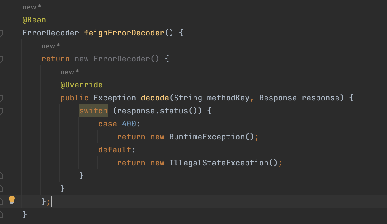 또한, 위와 같이 ErrorDecoder 를 이용하면.. 어떤 Http status 의 응답이 왔을 때.. 새로 정의한 예외를 터트릴수 도 있다.