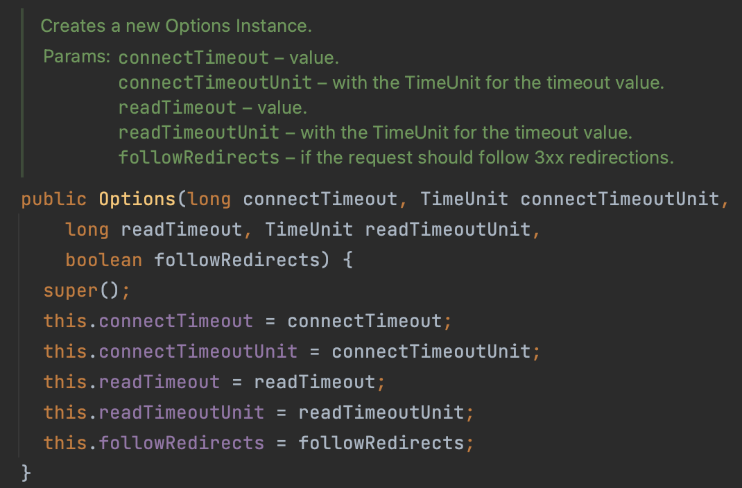 위 예시에서 봤던 Request.Options 를 만들기 위한 생성자이다.