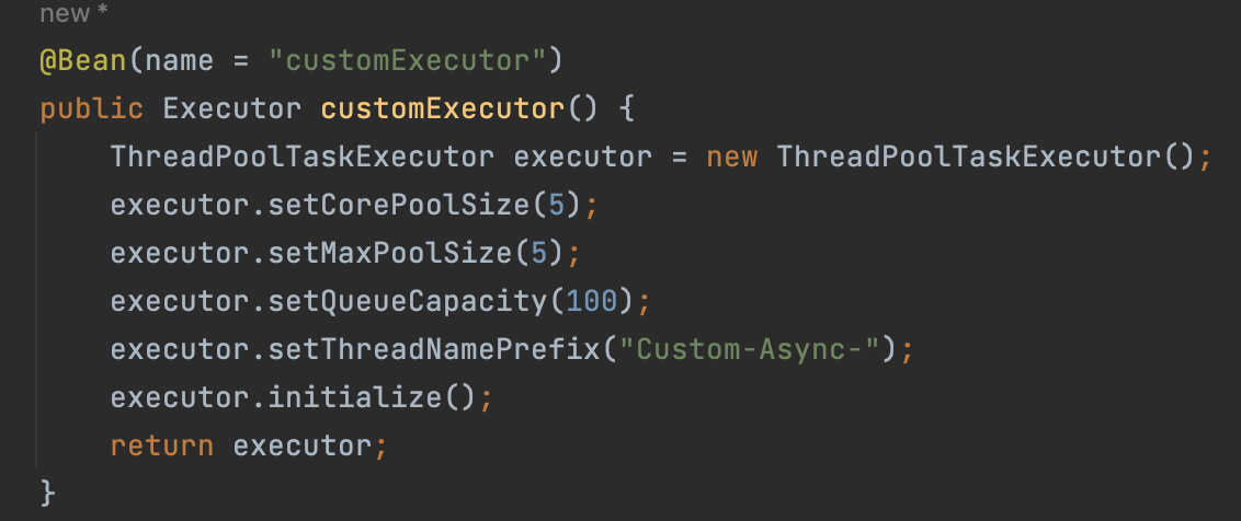 @Async 어노테이션이 동작할때 사용될 스레드를 ThreadPoolTaskExecutor 로 사용되도록 한다.