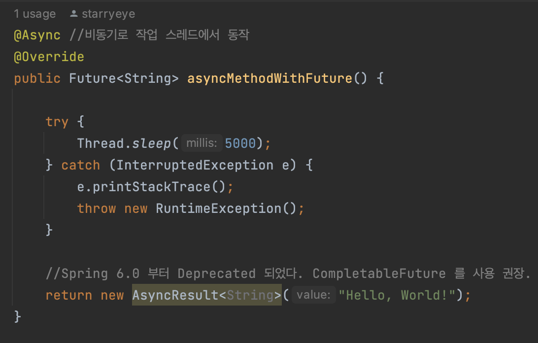 지금 까지는 @Async 어노테이션을 적용한 메서드의 반환 타입은 void 였다.