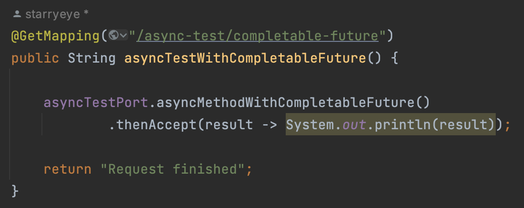 위와 같이 Controller 에서 CompletableFuture 을 바로 반환해줘도 동작한다.