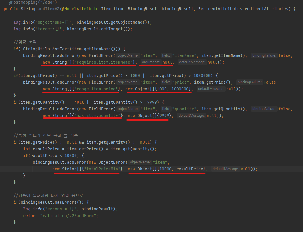 FieldError 클래스의 생성자 codes : 메세지 코드
