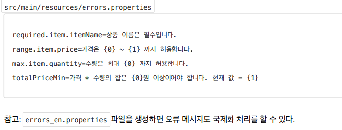 errors.properties 라는 별도의 파일을 만들어 관리 가능.