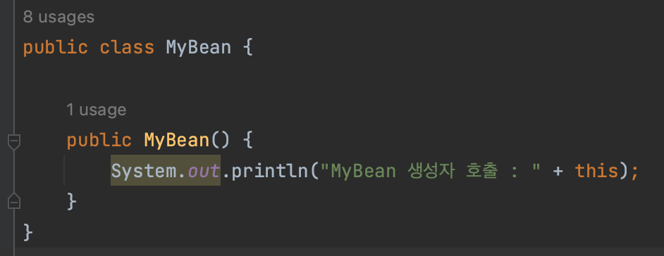 MyBean 생성자와 myBean 메서드는 1회 호출 되었음을 알 수 있다.