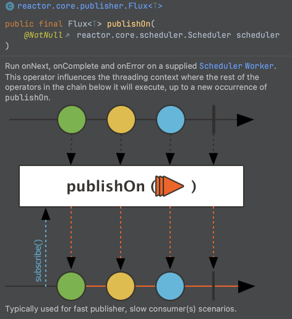 해당 내부 publisher 의 이벤트가 downstream 으로 전달 됨을 다이어그램으로 쉽게 확인 할 수 있다.