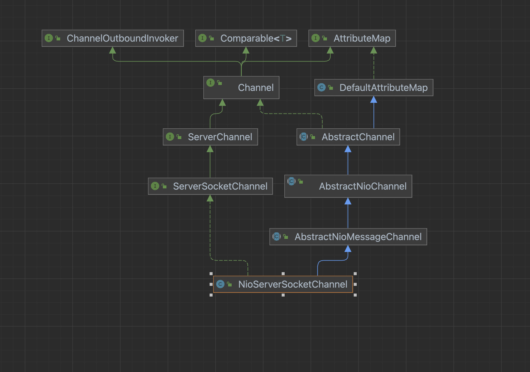 중간에 보이는.. ServerSocketChannel, SocketChannel, Channel 은 Java nio 소속이 아님을 다시한번 상기하자..