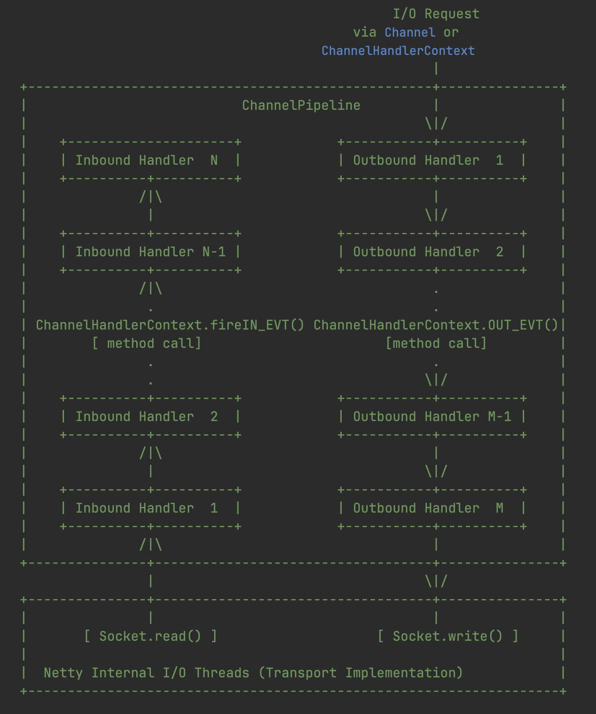 ChannelPipline 은 위 그림과 같이 ChannelInboundHandler 와 ChannelOutbound Handler 의 집합으로 이루어져있다.