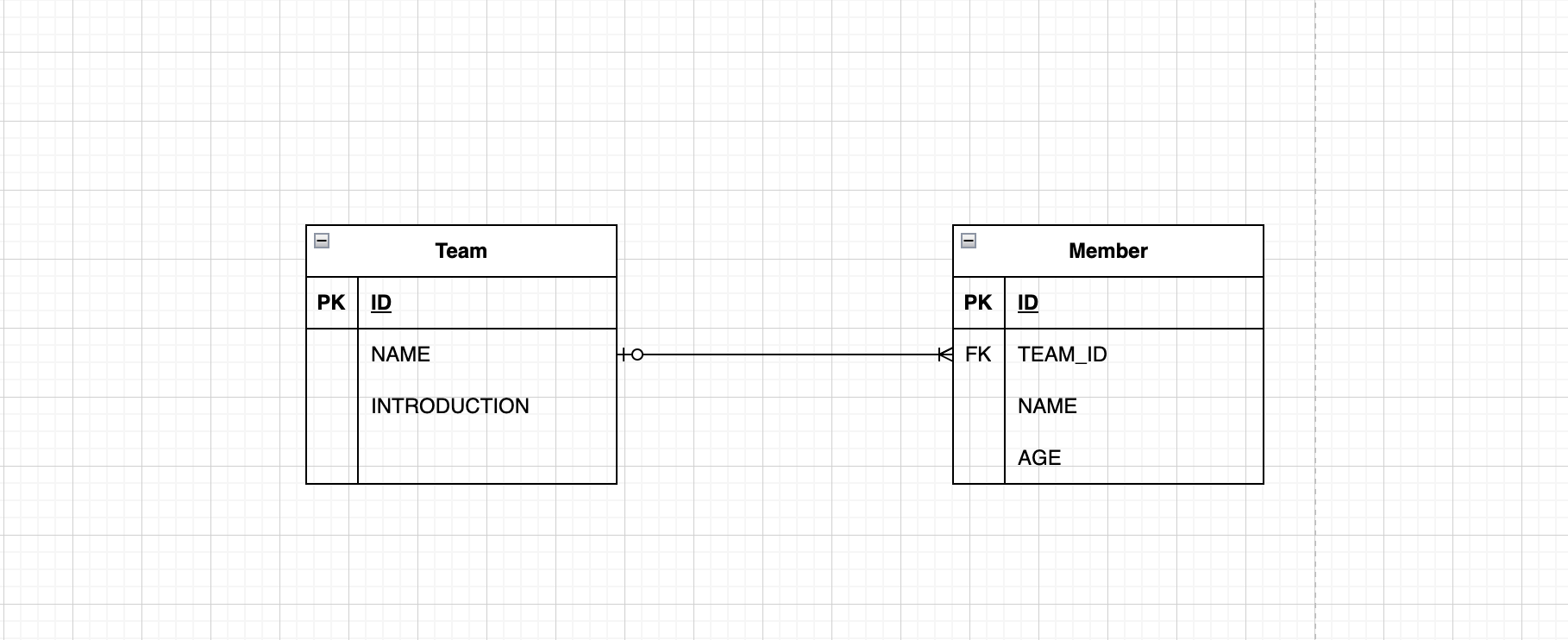 Team 이 여러 Member 를 가지는 관계이다.