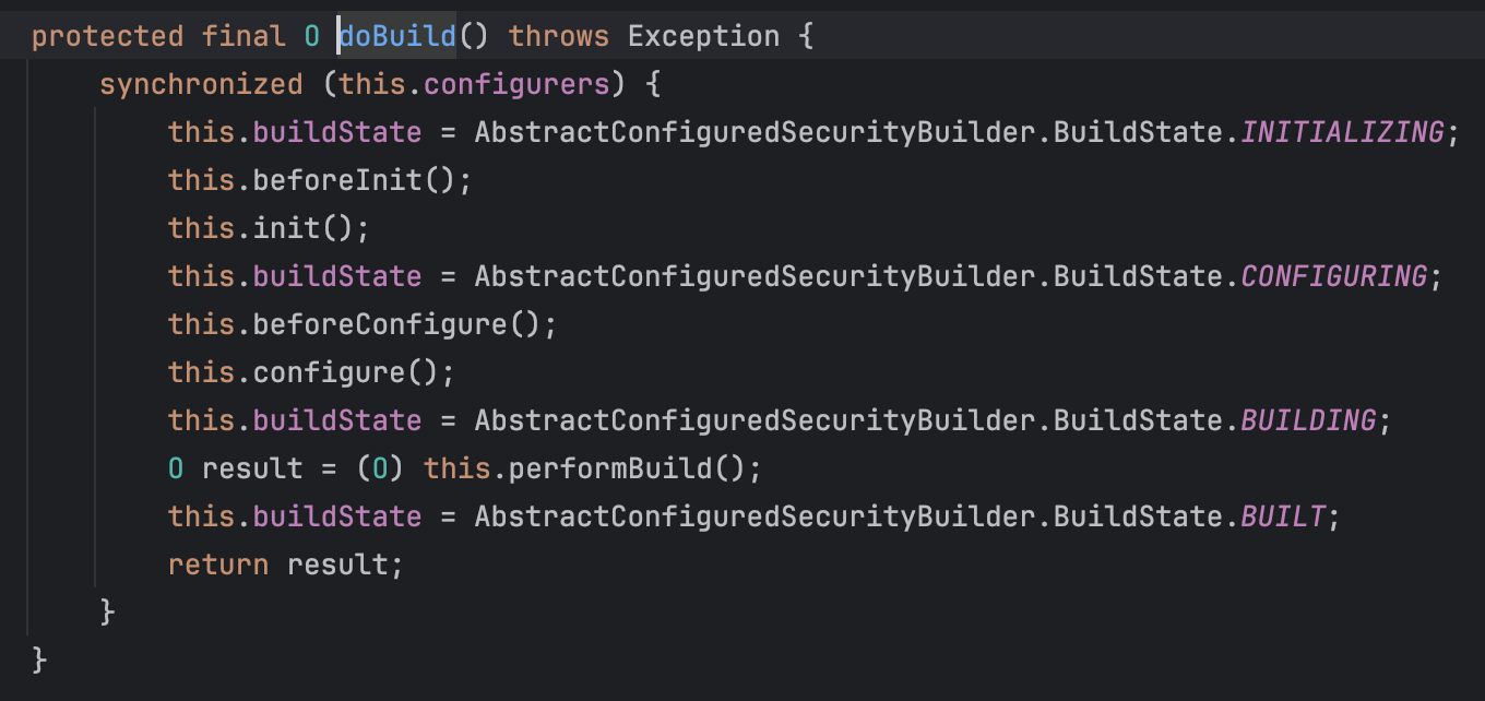 위는 HttpSecurity 의 build 메서드를 호출하면 수행되는 메서드들 중 하나이다.