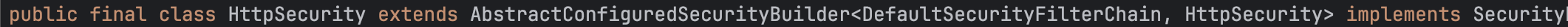 HttpSecurity 객체는 spring boot auto configuration 에 의해 자동으로 등록되는 빈인 것을 알 수 있다.