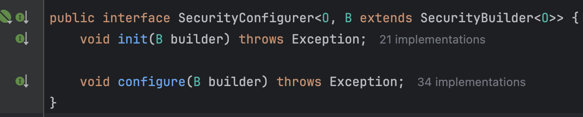 해당 설정들(SecurityConfigurer 구현체)을 init, configure 메서드를 호출해줌으로 하여
