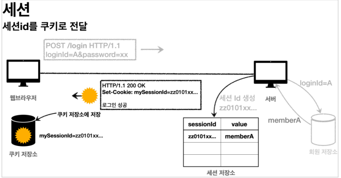 클라이언트가 쿠키를 보내면 서버는 해당 쿠키(임의의 값)를 읽어서 세션 저장소에서 매칭 시켜보고