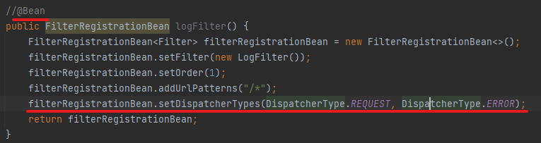 setDispatcherTypes로 해당 필터를 (위 예시에서는 LogFilter) 무슨 DispatcherType일 때 적용할 지 정의 할 수 있다.