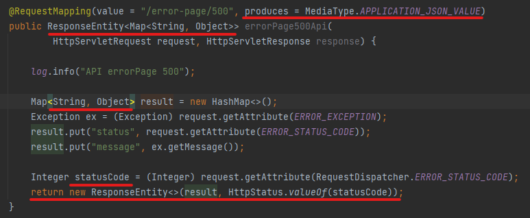request.getAttribute로 얻을 수 있는 정보로 상태코드를 받아 응답에 그대로 적용해준다.
