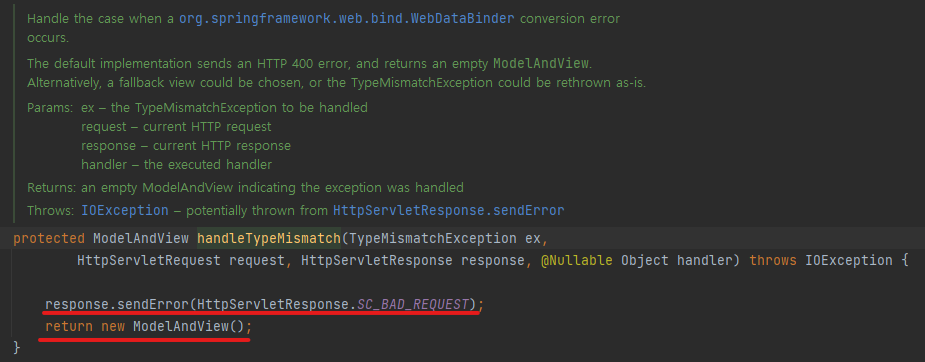 위는 handleTypeMismatch 메서드이다.