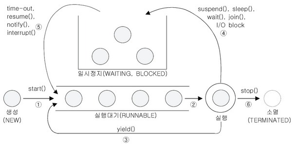 쓰레드의 상태를 제어할 수 있다. 이를 그림으로 나타낸게 위 그림이다.