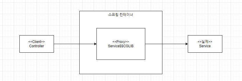 실제 객체 대신에 트랜잭션을 처리해주는 프록시 객체가 스프링 빈에 등록된다.